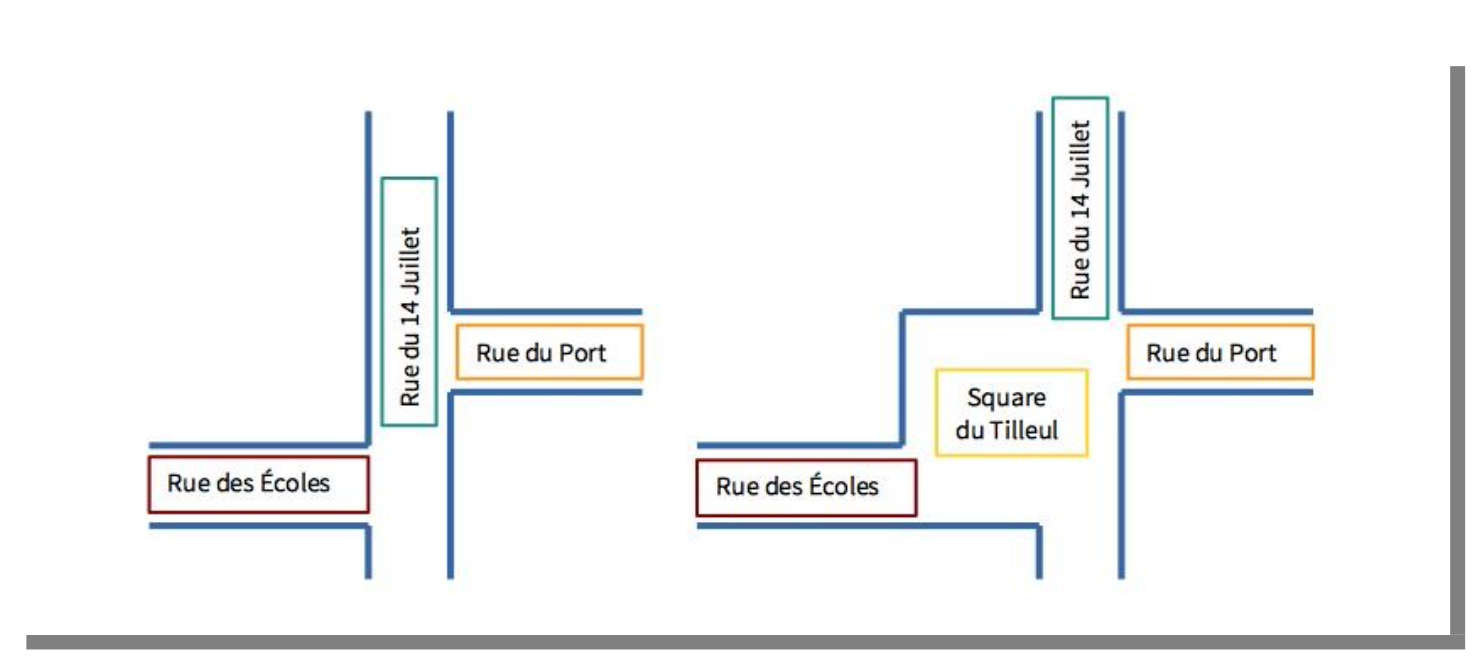 Le nom de la voie s’applique à un tronçon continu. En cas de discontinuité, le tronçon suivant prend un nom différent.