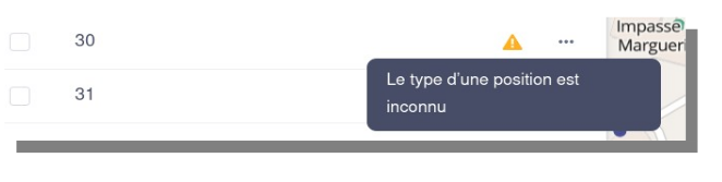 Lorsque la position est man-quante un triangle jaune s’affiche sur la ligne du numéro :