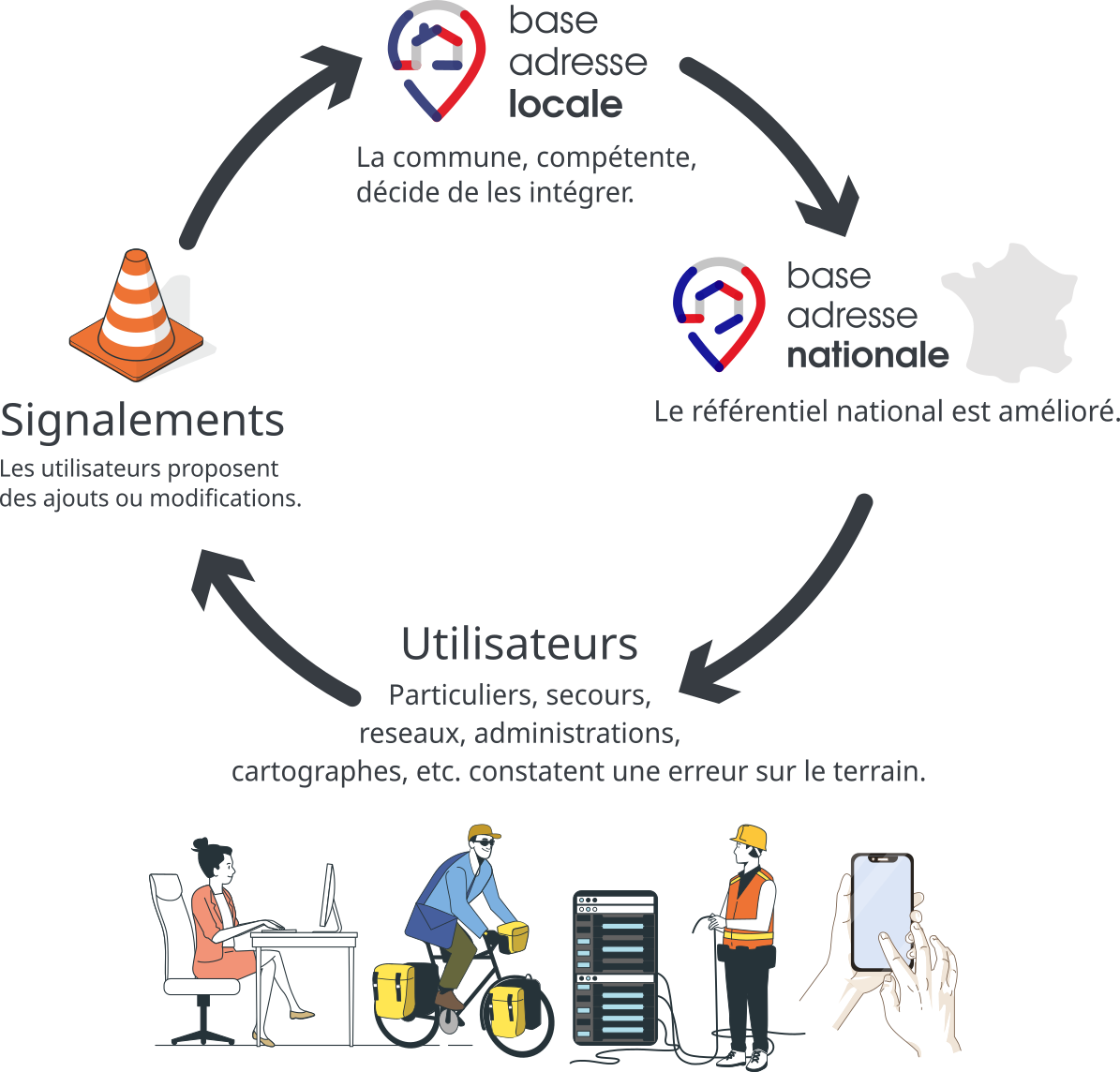 • Le dispositif de signalement permet à toute personne de proposer une remédiation à un problème constaté sur le terrain : une création, modification ou suppression via Mes Signalements.